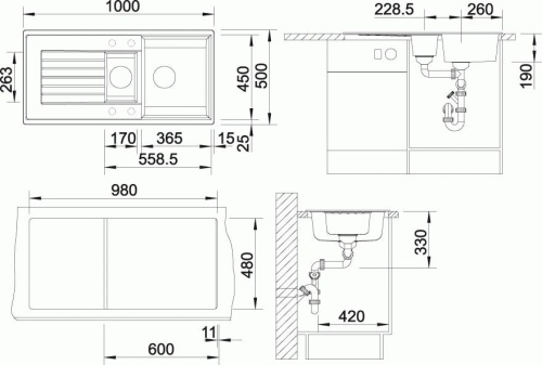 - Мойка кухонная Blanco Zia 6S 514748 антрацит