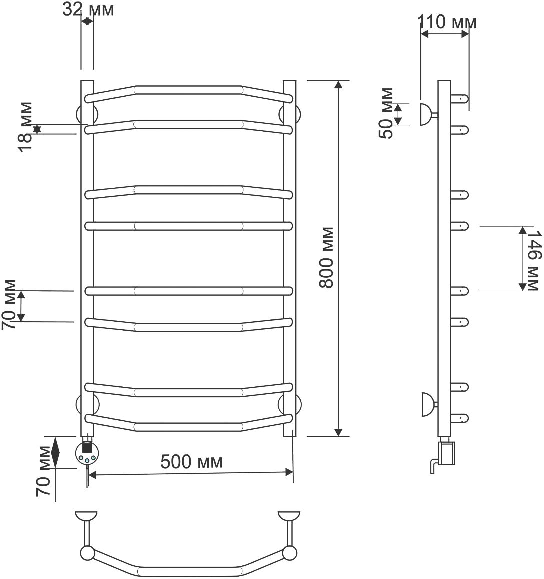 - Полотенцесушитель электрический Secado Агата 4 50х80