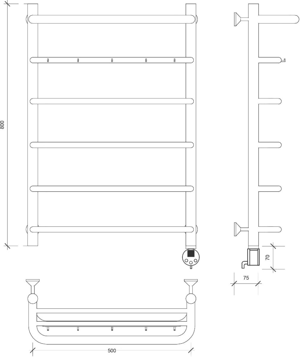 - Полотенцесушитель электрический Secado Мерида 1 КСП 80х50, хром, R