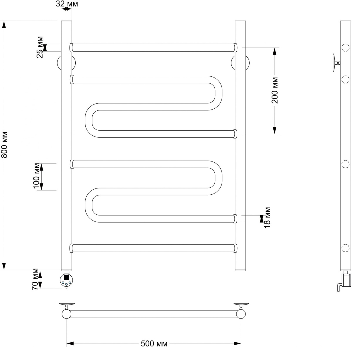 - Полотенцесушитель электрический Secado Валенсия 2 50х80 (32/18) R