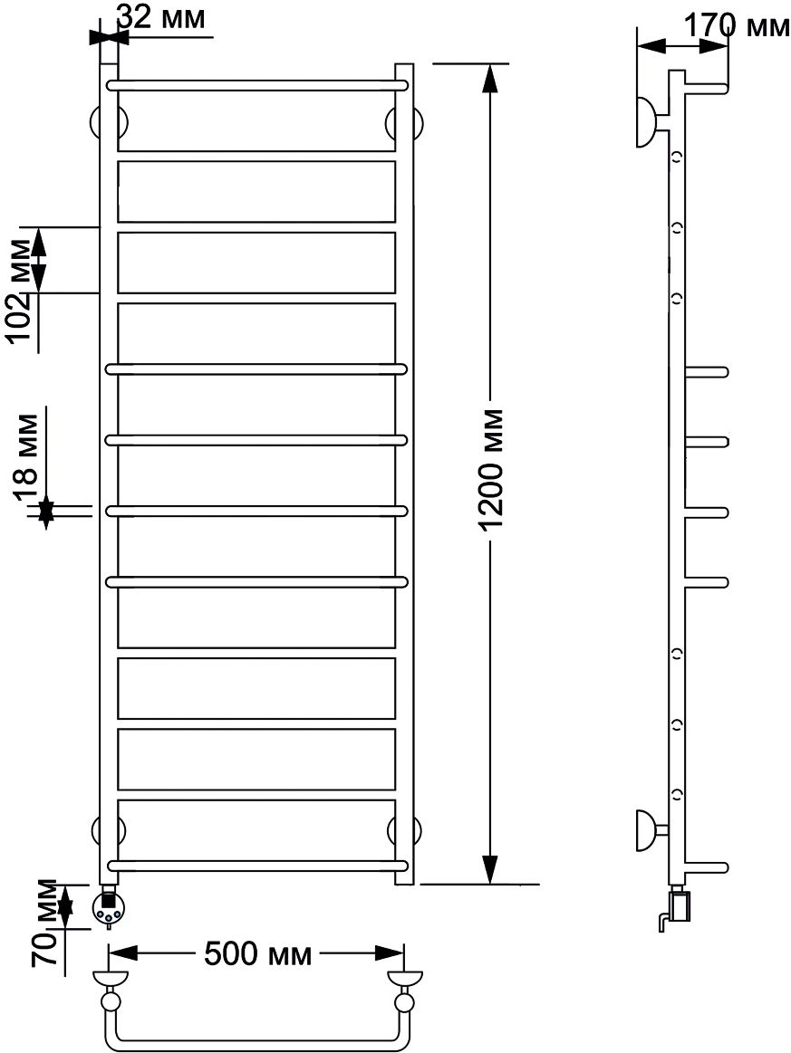 - Полотенцесушитель электрический Secado Верона 1 50х120 (32/18) L