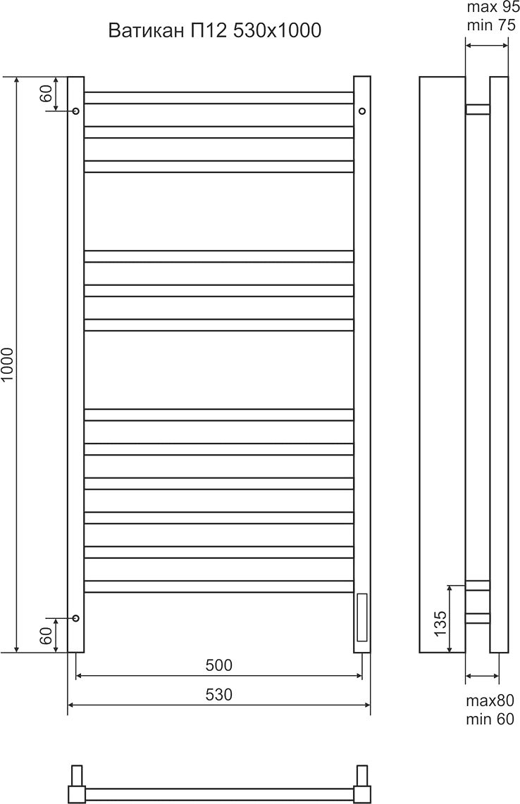- Полотенцесушитель электрический Terminus Ватикан П12 50x100, sensor quick touch