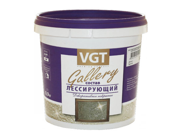 - VGT GALLERY ЛЕССИРУЮЩИЙ МАТОВЫЙ состав для декоративных штукатурок, бесцветный (0,9кг)