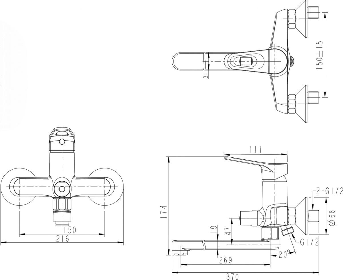 - Душевой комплект Bravat Eco F00414C 2 в 1