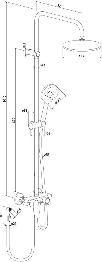 - Душевая стойка Damixa Apollo DX220910300 с гигиеническим душем, черная