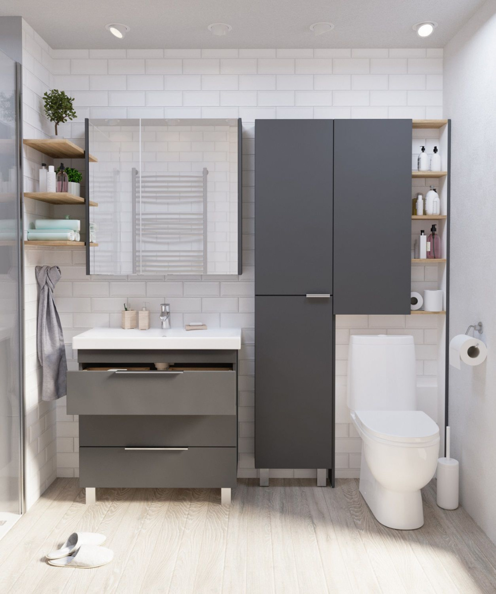 - Мебель для ванной 1MarKa Gaula 80Н черная, 3 ящика