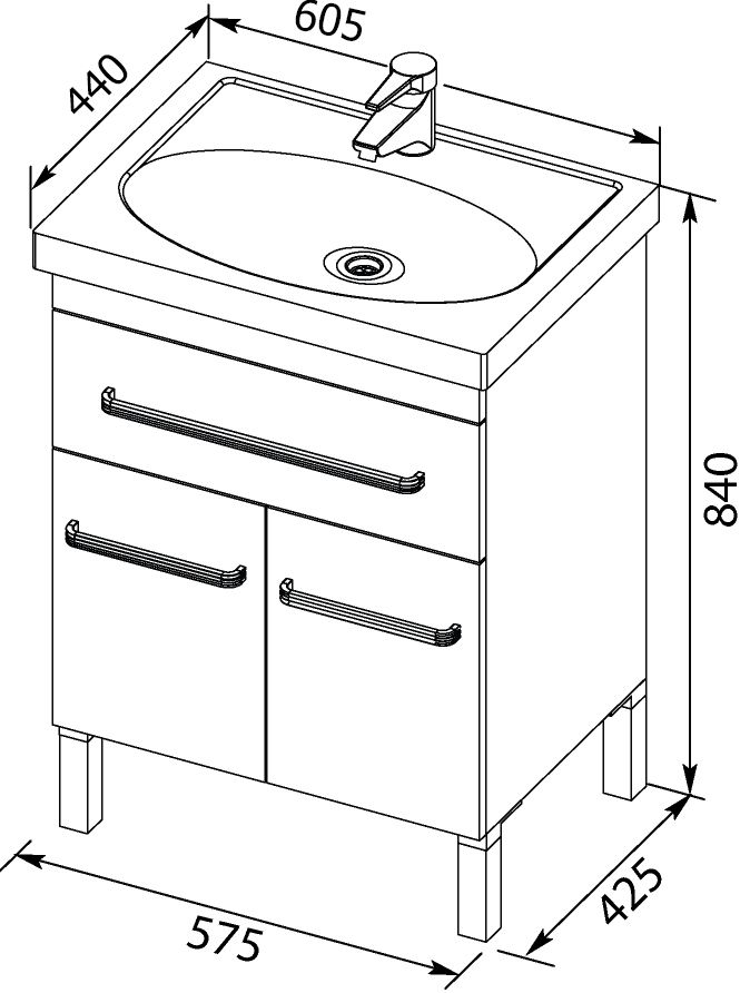 - Мебель для ванной Aquanet Сиена 60 белая, 1 ящик, 2 двери