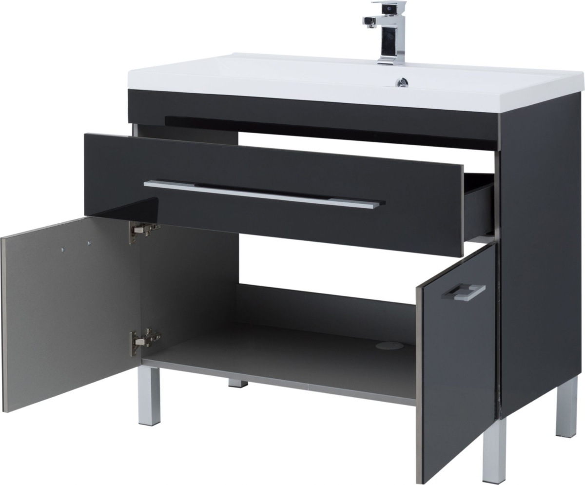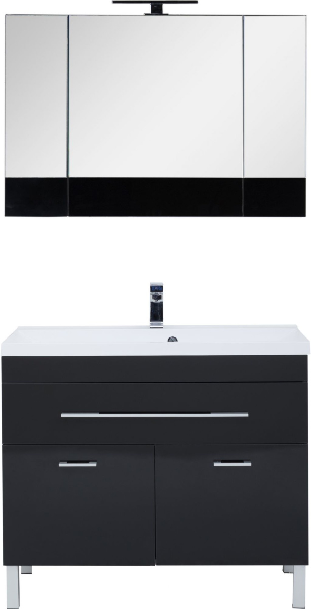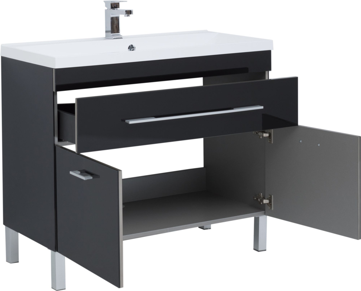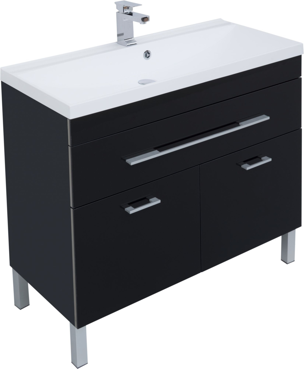 - Мебель для ванной Aquanet Верона 100 черная, 1 ящик, 2 двери