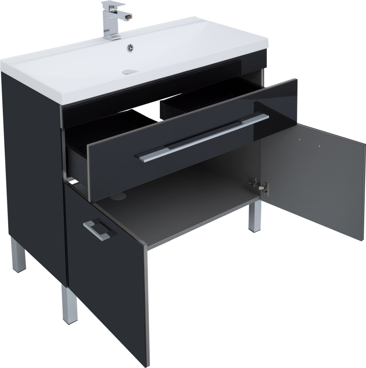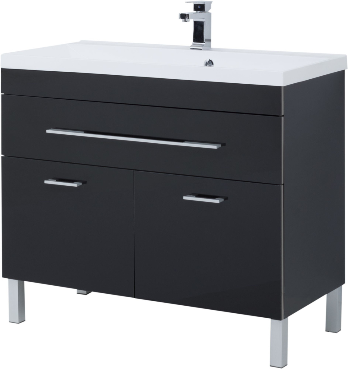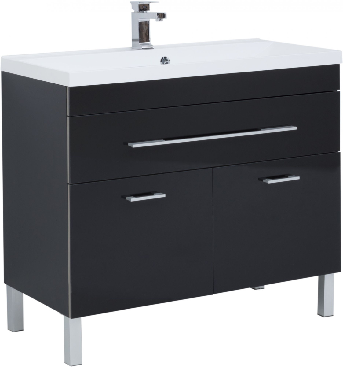 - Мебель для ванной Aquanet Верона 100 черная, 1 ящик, 2 двери