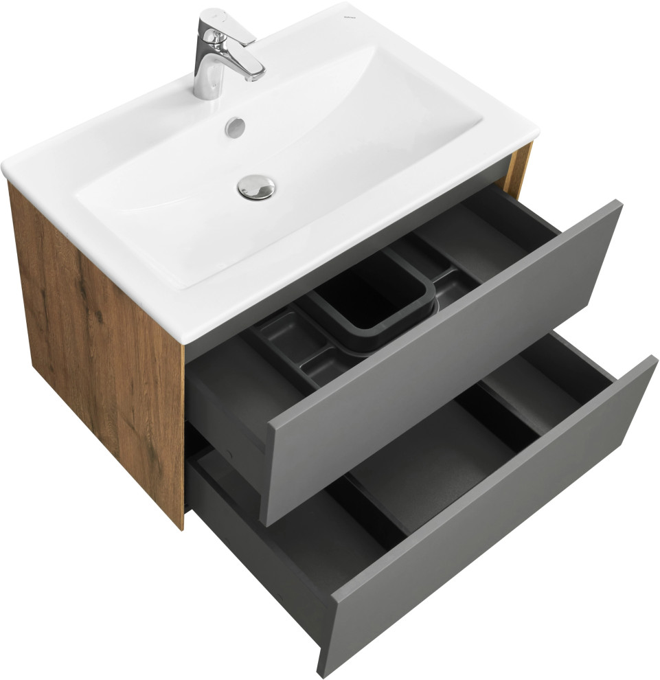 - Мебель для ванной AQUATON Сохо 75 дуб веллингтон, графит софт