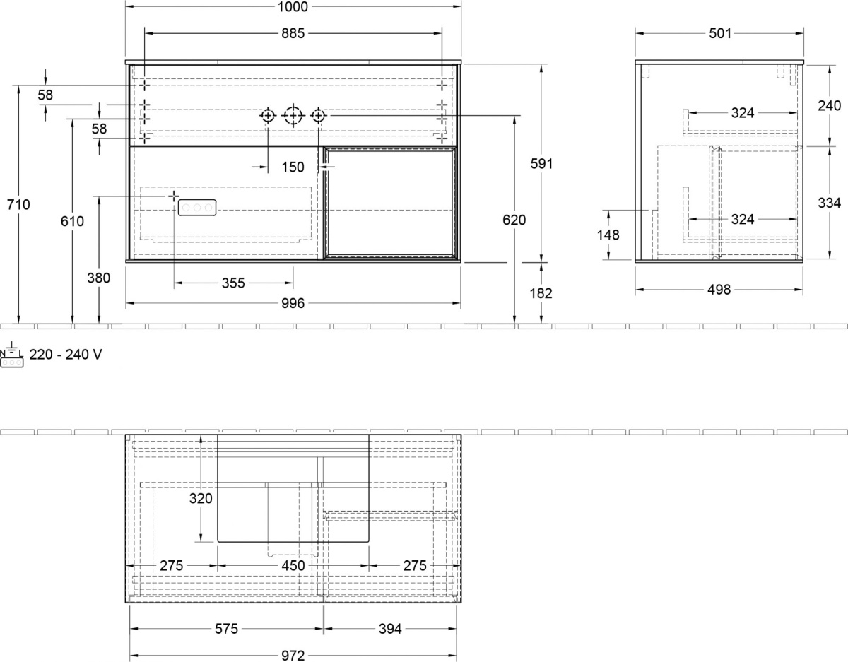 - Мебель для ванной Villeroy & Boch Finion G122PDGN 100 с подсветкой и освещением стены