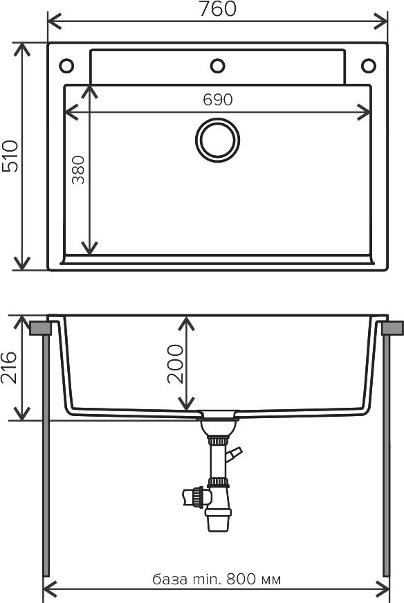 - Мойка кухонная Polygran Argo 760 белый хлопок