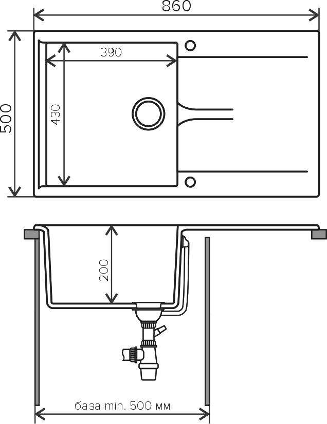 - Мойка кухонная Polygran Gals 860 черная