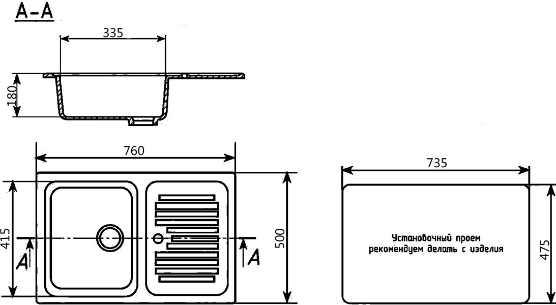 - Мойка кухонная Ulgran U-502-308 черная