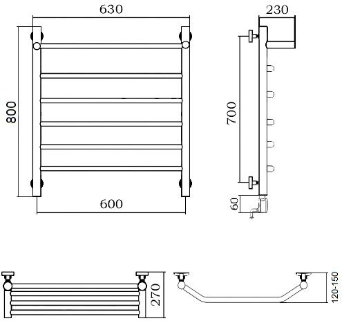 - Полотенцесушитель электрический Aquanerzh Трапеция с полкой R 80x60