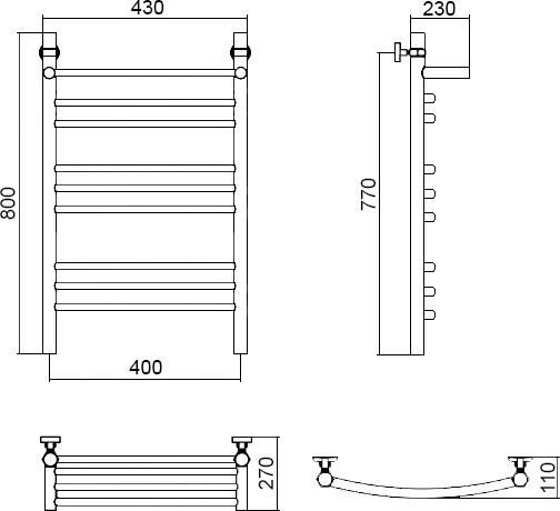 - Полотенцесушитель водяной Aquanerzh Дуга групповая с полкой 80х40