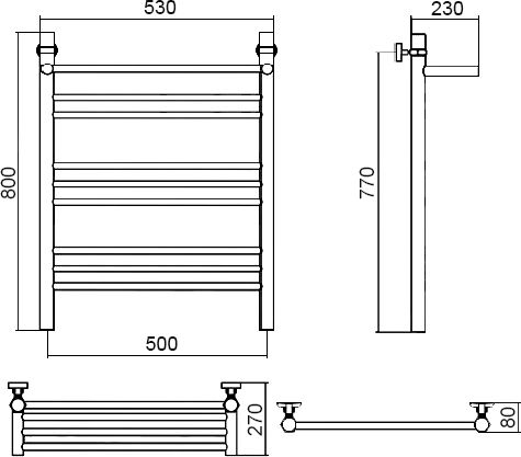 - Полотенцесушитель водяной Aquanerzh Прямой групповой с полкой 80х50