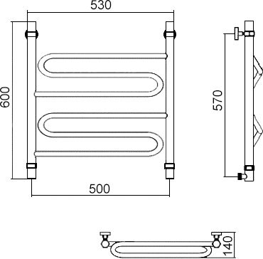 - Полотенцесушитель водяной Aquanerzh Зигзаг 60х50