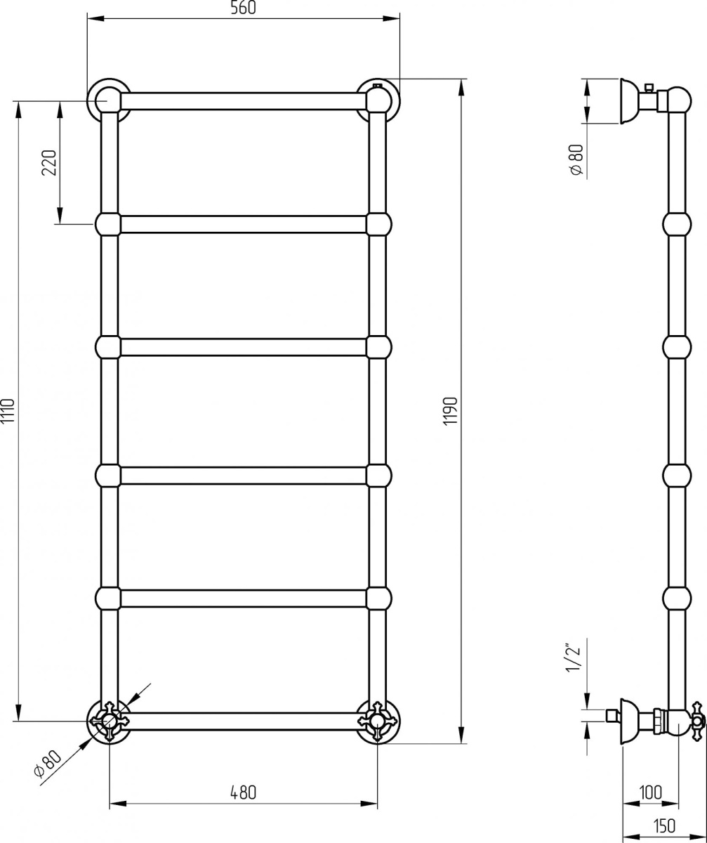 - Полотенцесушитель водяной Migliore Colosseum 20290 119x56, золото