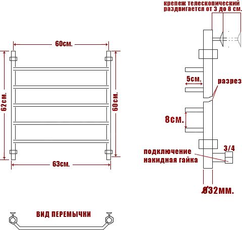 - Полотенцесушитель водяной Ника Trapezium ЛТ 60/60-5
