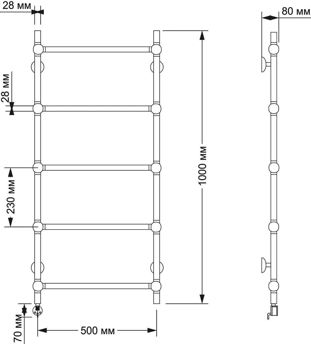 - Полотенцесушитель электрический Secado Флоренция 1 50х100 (28/28) R
