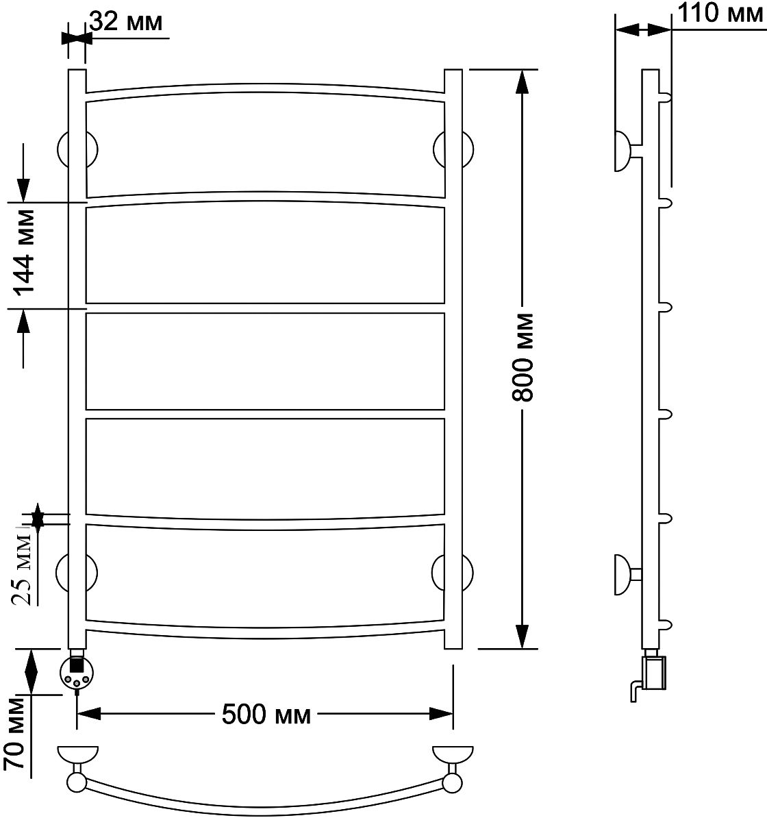 - Полотенцесушитель электрический Secado Милан 1 плюс 50х80 (32/25) L