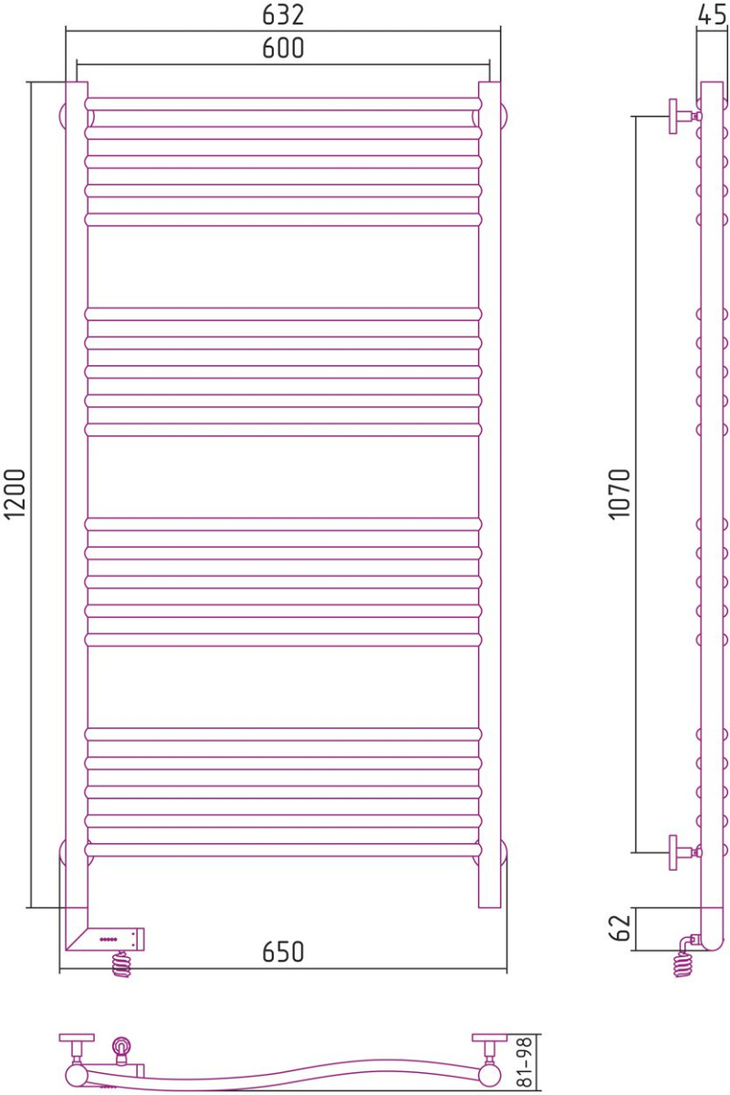 - Полотенцесушитель электрический Сунержа Флюид 2.0 120x60 R