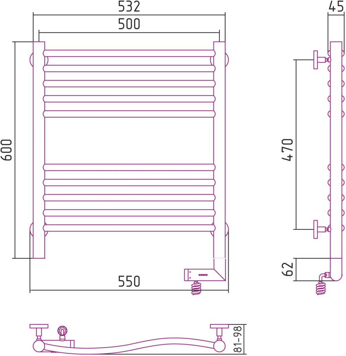 - Полотенцесушитель электрический Сунержа Флюид 2.0 60x50 R