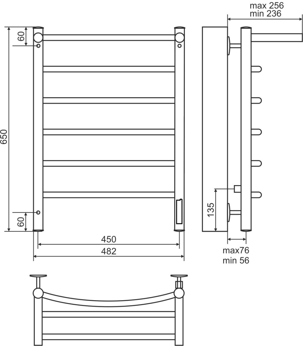 - Полотенцесушитель электрический Terminus Классик П6 450x650 с полкой