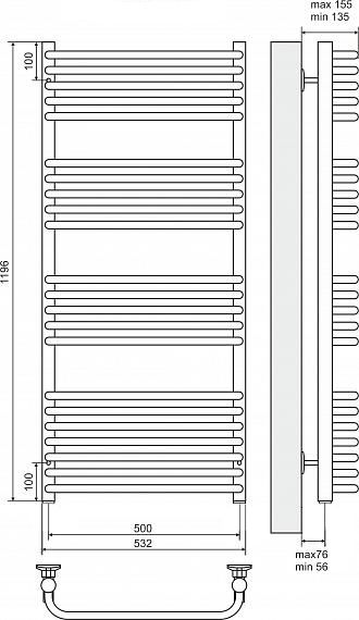 - Полотенцесушитель электрический Terminus Стандарт П22 500*1196