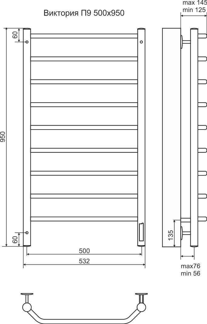 - Полотенцесушитель электрический Terminus Виктория П9 500x950 черный матовый