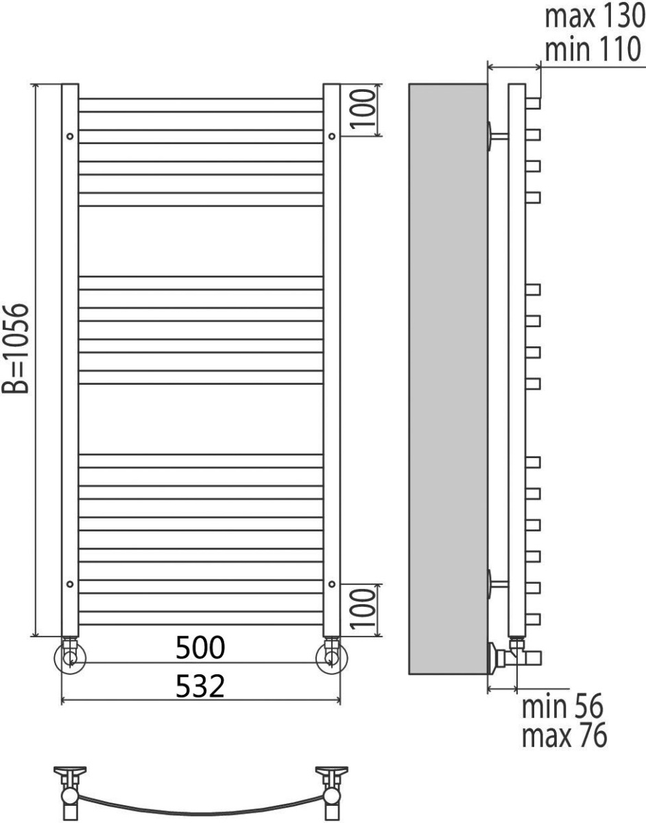 - Полотенцесушитель водяной Terminus Авиэль П14 500*1056