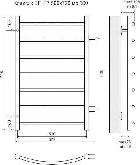 - Полотенцесушитель водяной Terminus Классик П7 500x796 с боковым подключением 500