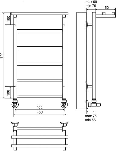 - Полотенцесушитель водяной Terminus Контур П6 400*700 с полкой