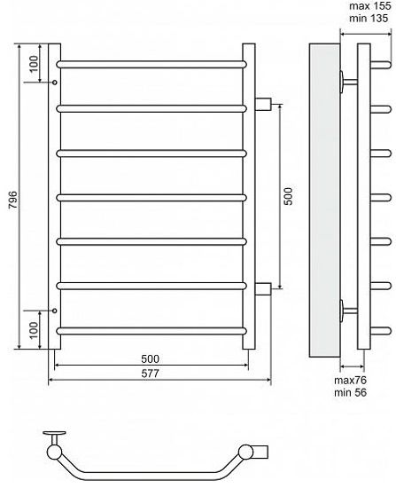 - Полотенцесушитель водяной Terminus Виктория П7 500x796 с боковым подключением 500