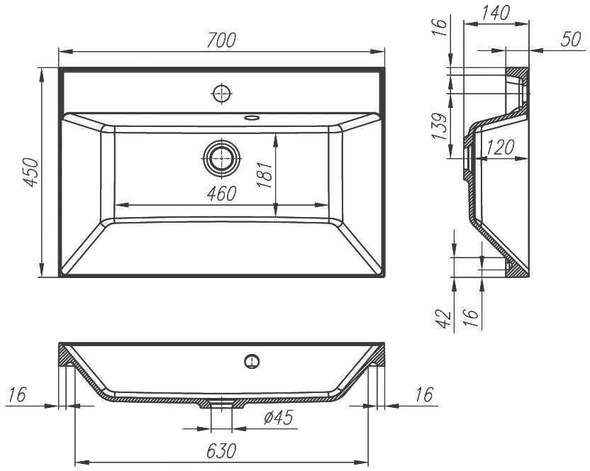 - Мебельная раковина Art&Max AM-LAV-700-MR-FА