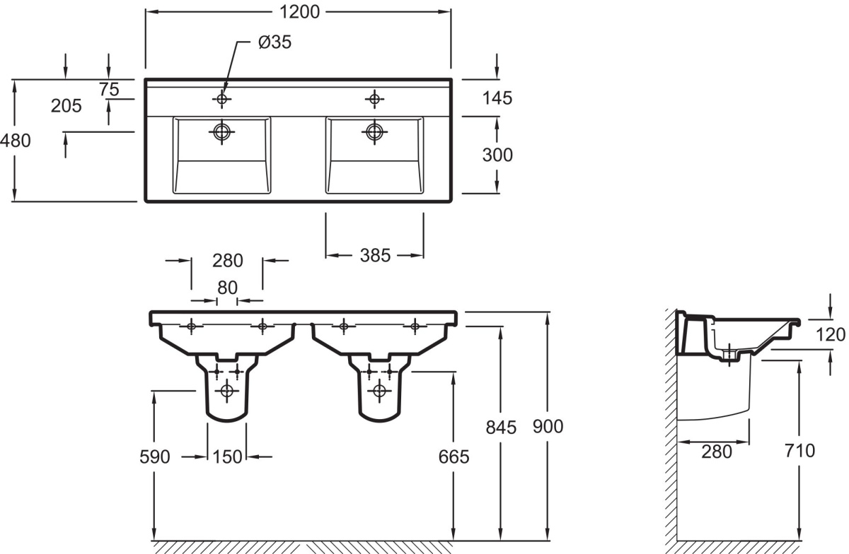 - Раковина Jacob Delafon Struktura EXF112 120 см, двойная
