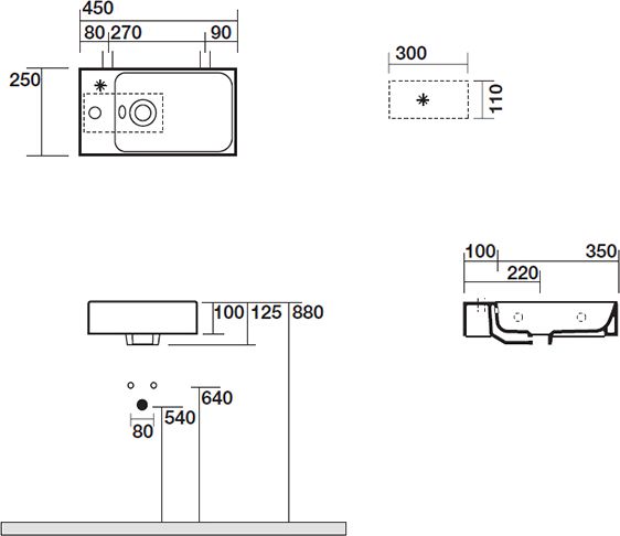 - Рукомойник Kerasan Cento 45 см, отверстие слева
