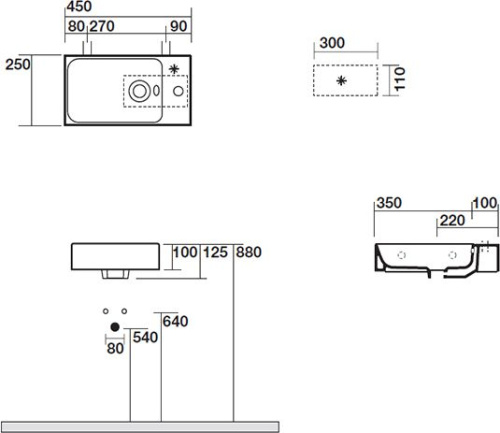 - Рукомойник Kerasan Cento 45 см, отверстие справа