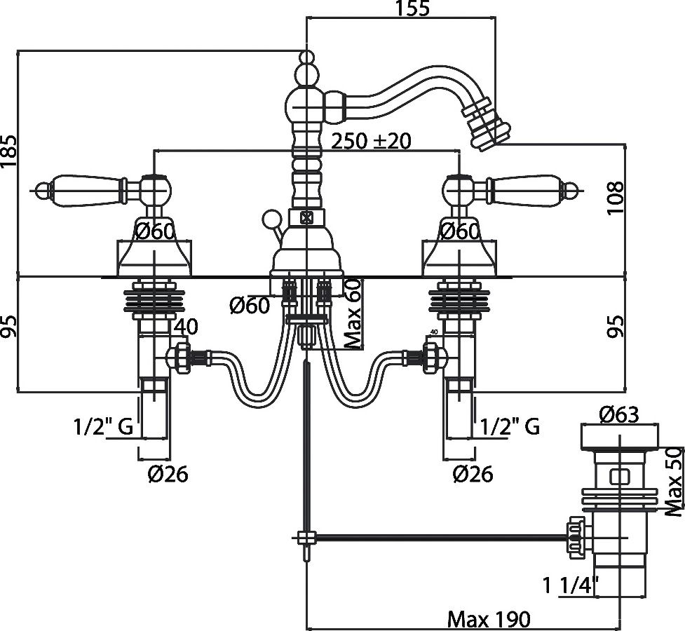 - Смеситель Cezares Diamond DIAMOND-BBS2-02-Sw для биде