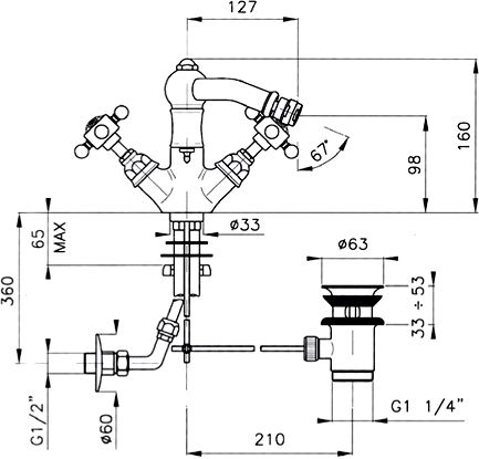 - Смеситель Nicolazzi Tradizionale 1434CR70 для биде, с д/к