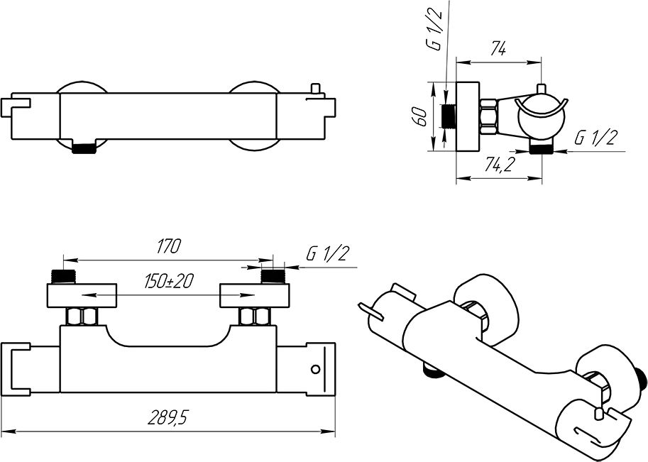- Термостат Paini Morgana 73OP511TH для душа, золото PVD