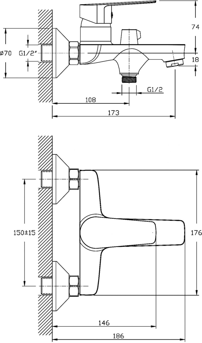 - Смеситель Rush Disco DI6935-44 для ванны с душем