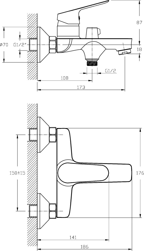 - Смеситель Rush Yell YE5735-44 для ванны с душем