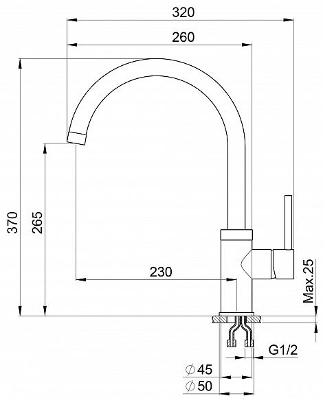 - Смеситель Granula GR-2125 для кухонной мойки, алюминиум