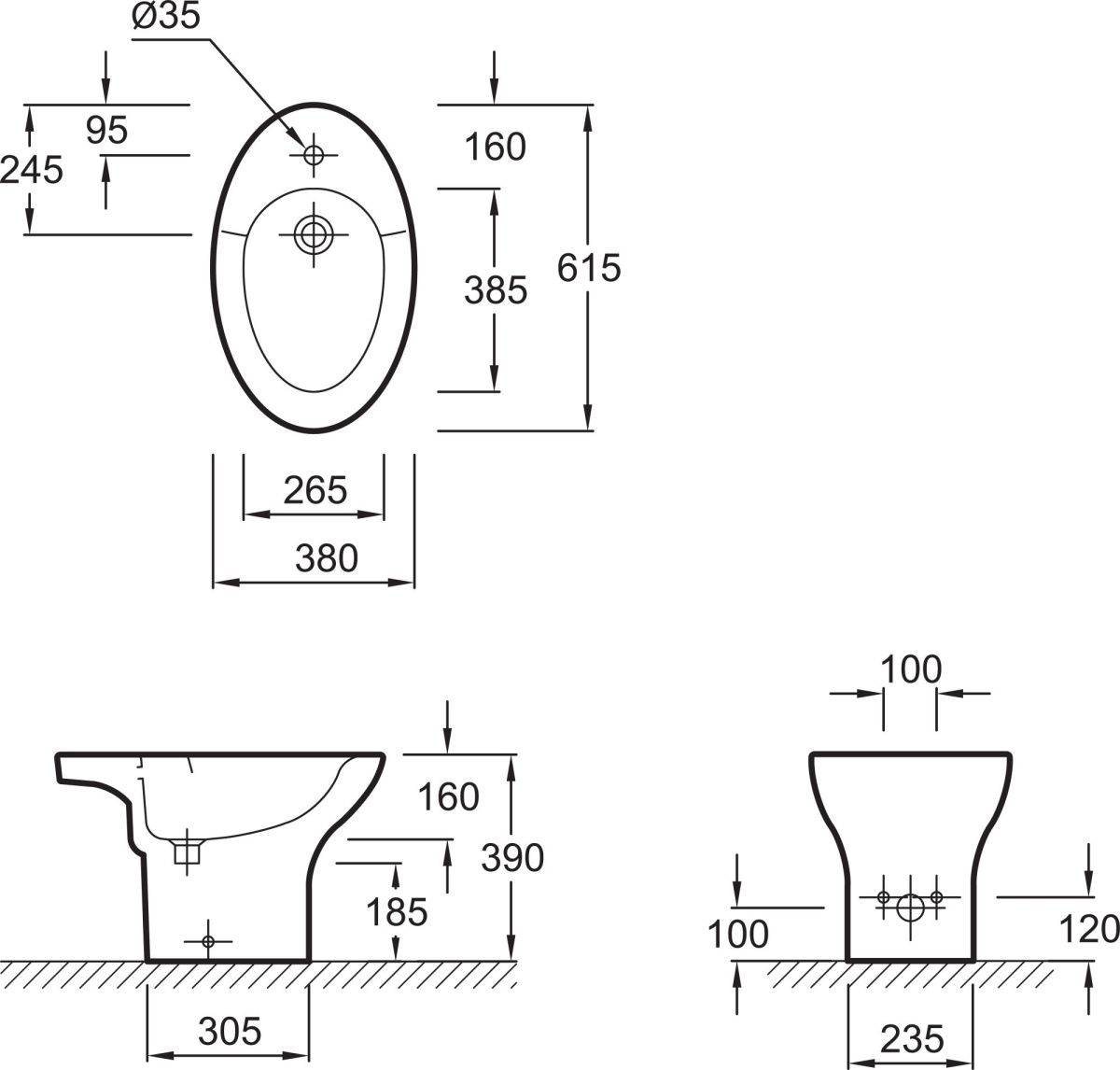 - Биде напольное Jacob Delafon Presquile E1348