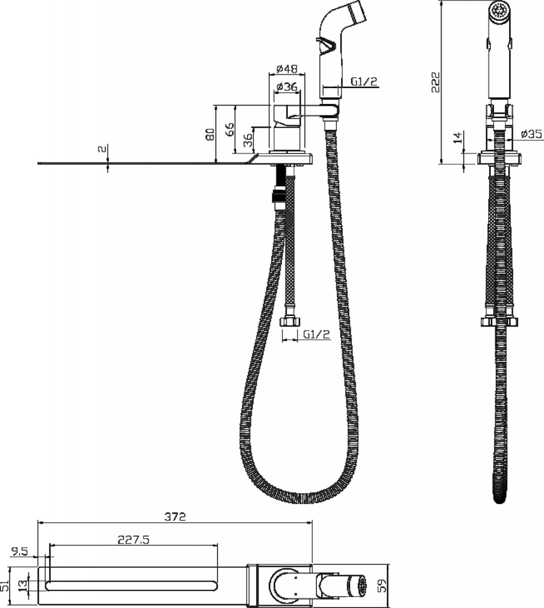 • оснащение: душевой шланг / настенный держатель