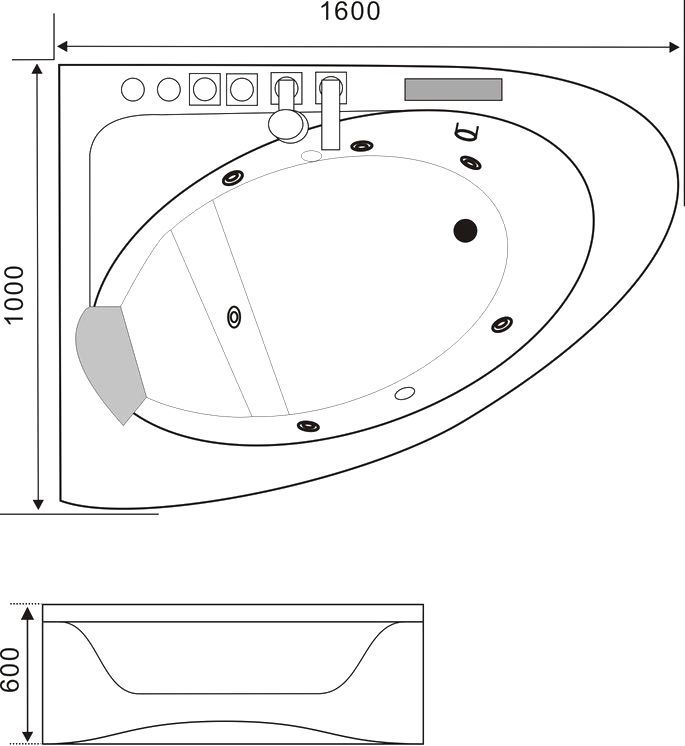 - Акриловая ванна Black&White Galaxy GB5008 160x100 L