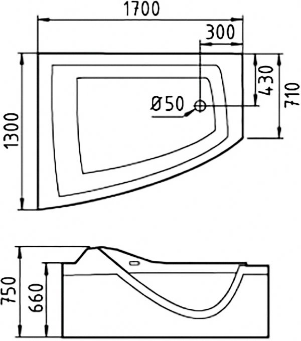 - Акриловая ванна Gemy G9056 K 170x130 L