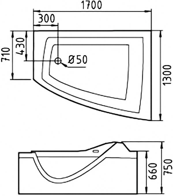 - Акриловая ванна Gemy G9056 K 170x130 R